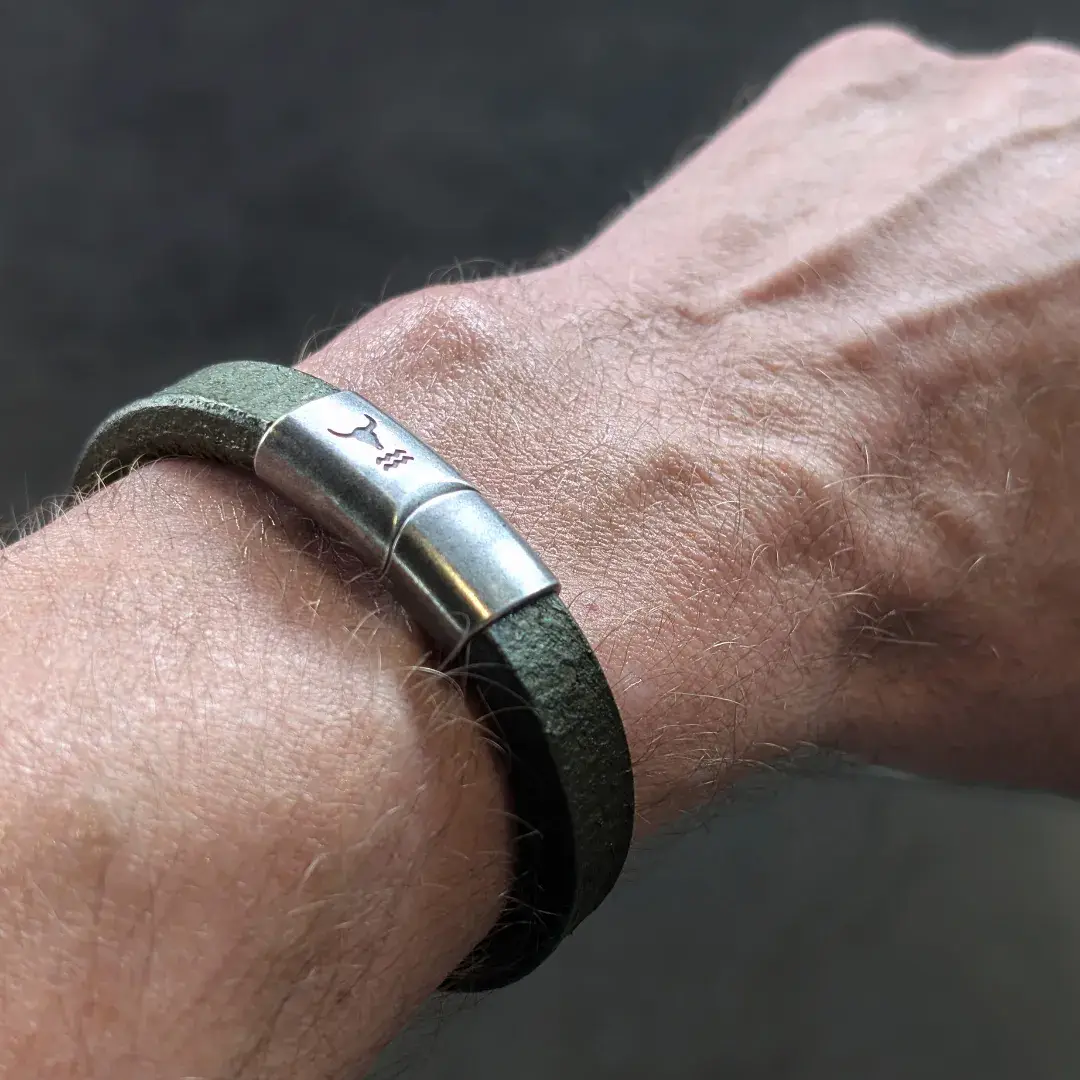 Das Armband aus gegerbtem Leder in Vintage-Oliv erzählt Geschichten – von Stil, Individualität und Momenten, die bleiben.